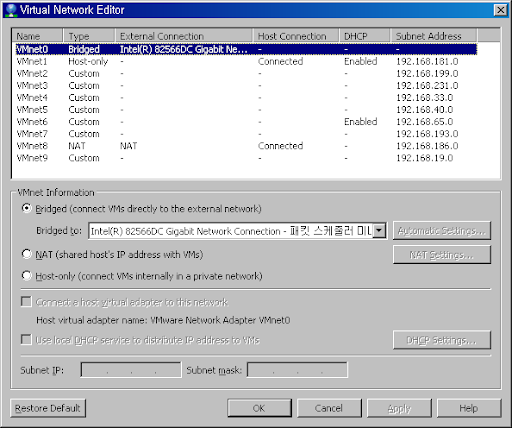 VMware Player 3.0 이상 버전에서 NAT 등의 네트워크 설정 vmnetcfg....